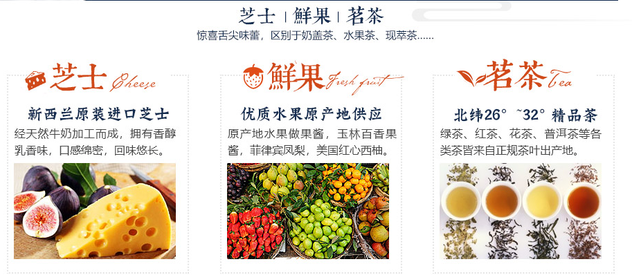 l 口感好,賺錢易:芝士醇香茗茶+清香鮮熟果茶+新式養生茶飲,新西蘭優質奶源+世界各地優質茶種+自然成熟采摘鮮果,芝士茶飲的醇香濃郁與鮮熟果茶清香甜美完美融合,清甜爽口、茗香四溢,口感好,才是賺錢的王道。