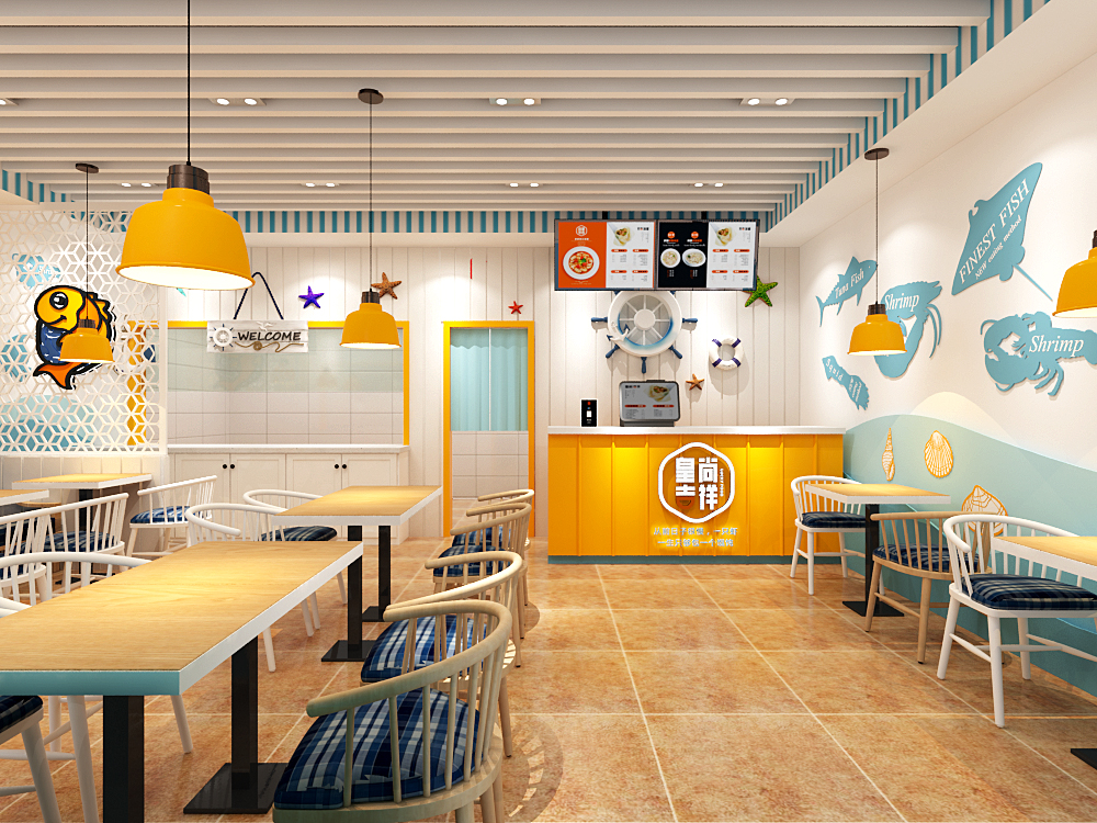 門店升級:利用現代空間美學,融入時尚潮流,搭配海鮮元素,讓店鋪充滿個性色彩,涌動青春活力!