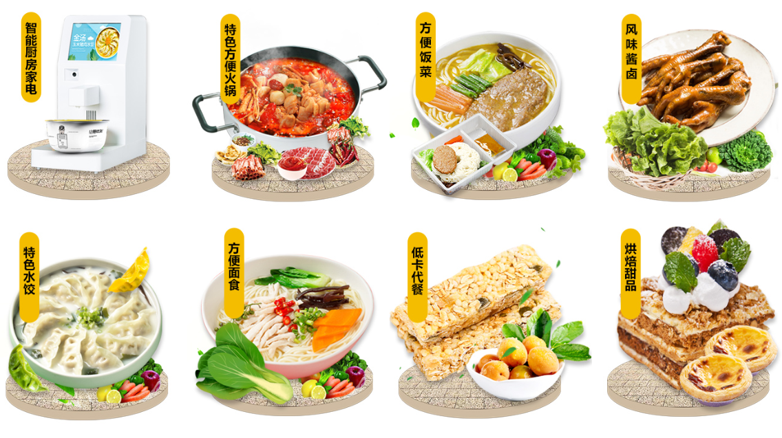 三、品類豐富,滿足高頻剛需:超過200款標準化方便美味,一日三餐一站式購齊,滿足不同家庭成員就餐需求。配合智能廚房家電,收入更加多元。